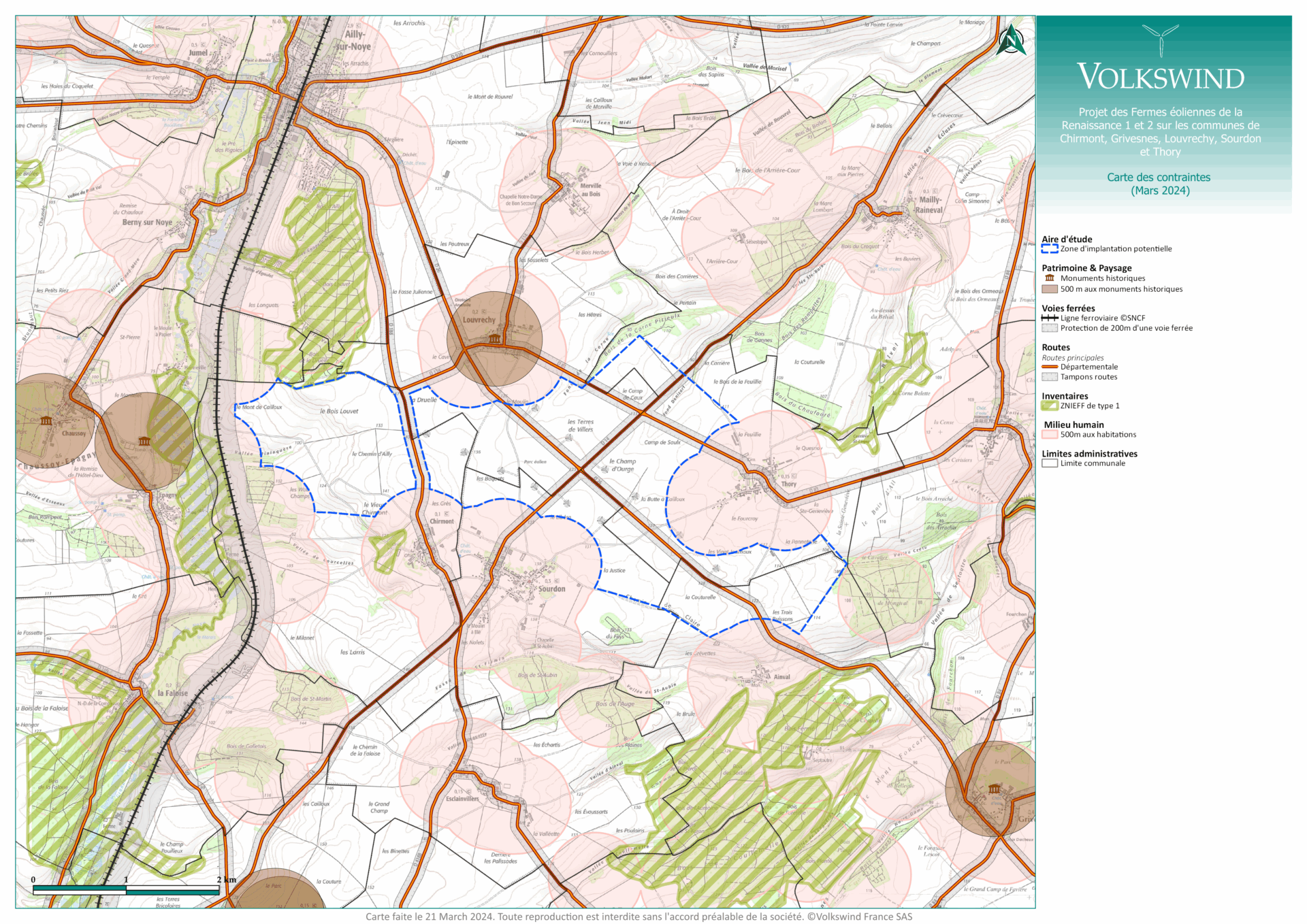 Le projet des Fermes éoliennes de la Renaissance 1 et 2 est situé sur les communes de Chirmont, Grivesnes, Louvrechy, Sourdon et Thory dans le département de la Somme (80). Il consiste au renouvellement et à l’extension des parcs éoliens de Val de Noye 1 et 2, mis en service en 2009.
